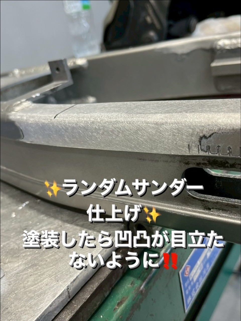 ランダムサンダーを使用し、凹凸を無くして美しく仕上げ。後の溶接精度を高めるためにも、この工程は非常に重要です。